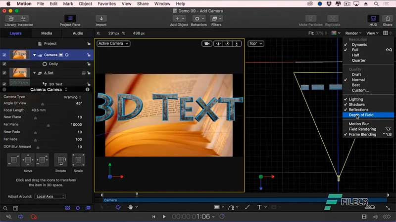 Motion 5.6.1 es un plugin para Final Cut Pro X en Mac. Nos permite crear títulos, transiciones y efectos de Final Cut Pro además de crear nuestras propias animaciones en 2D o 3D.