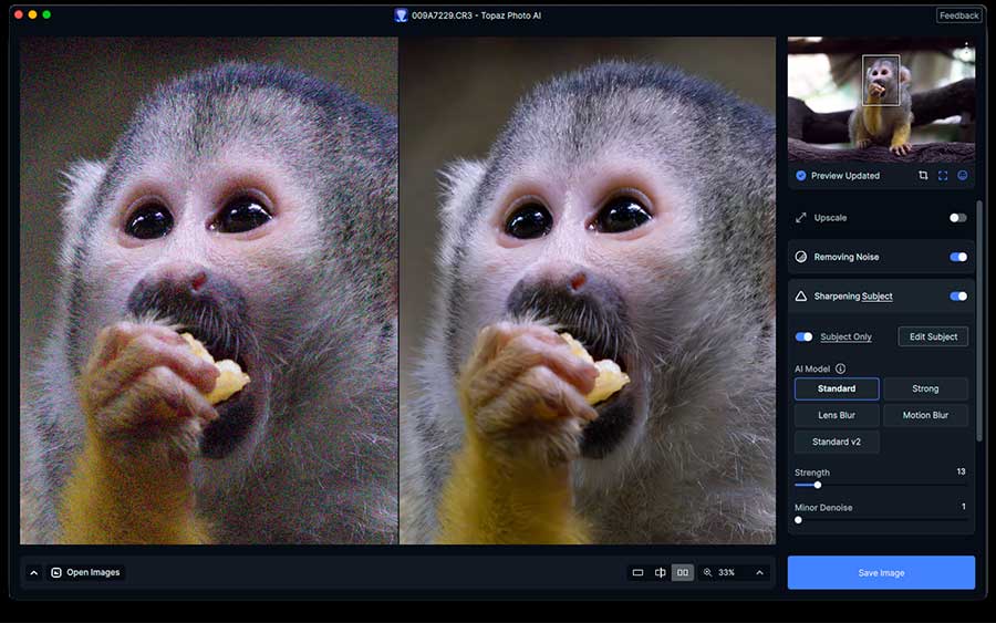 • Combina herramientas de eliminación de ruido, eliminación de desenfoque, mejora, nitidez y escalado de imágenes en un solo paquete.